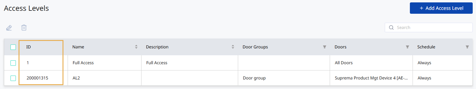 Access level IDs: Check the access level ID in Access Management → Access Levels. Full Access is always set to 1. Use commas (
