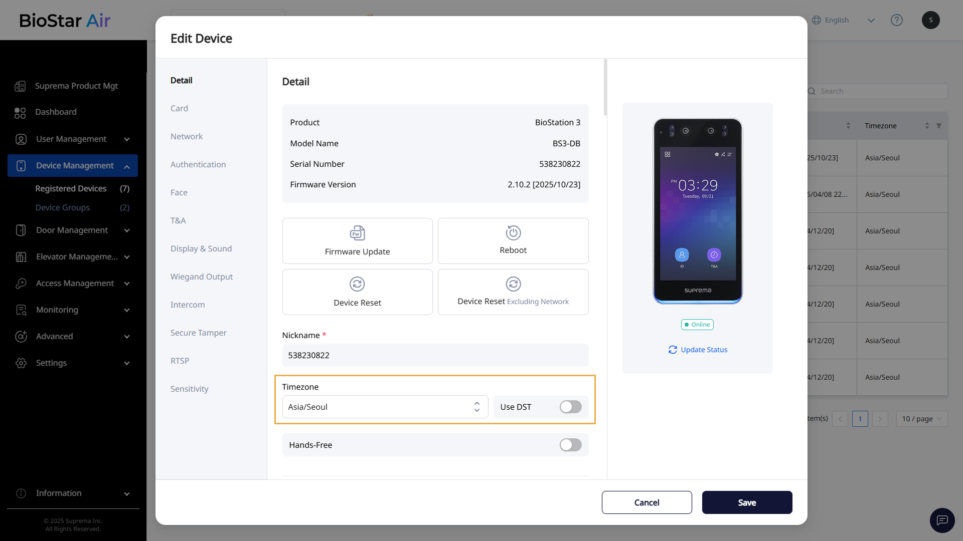 Select the desired time zone in the Timezone section, and enable the Use DST option.