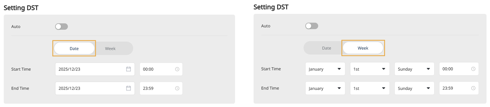 Date: Select the dates when DST starts and ends.