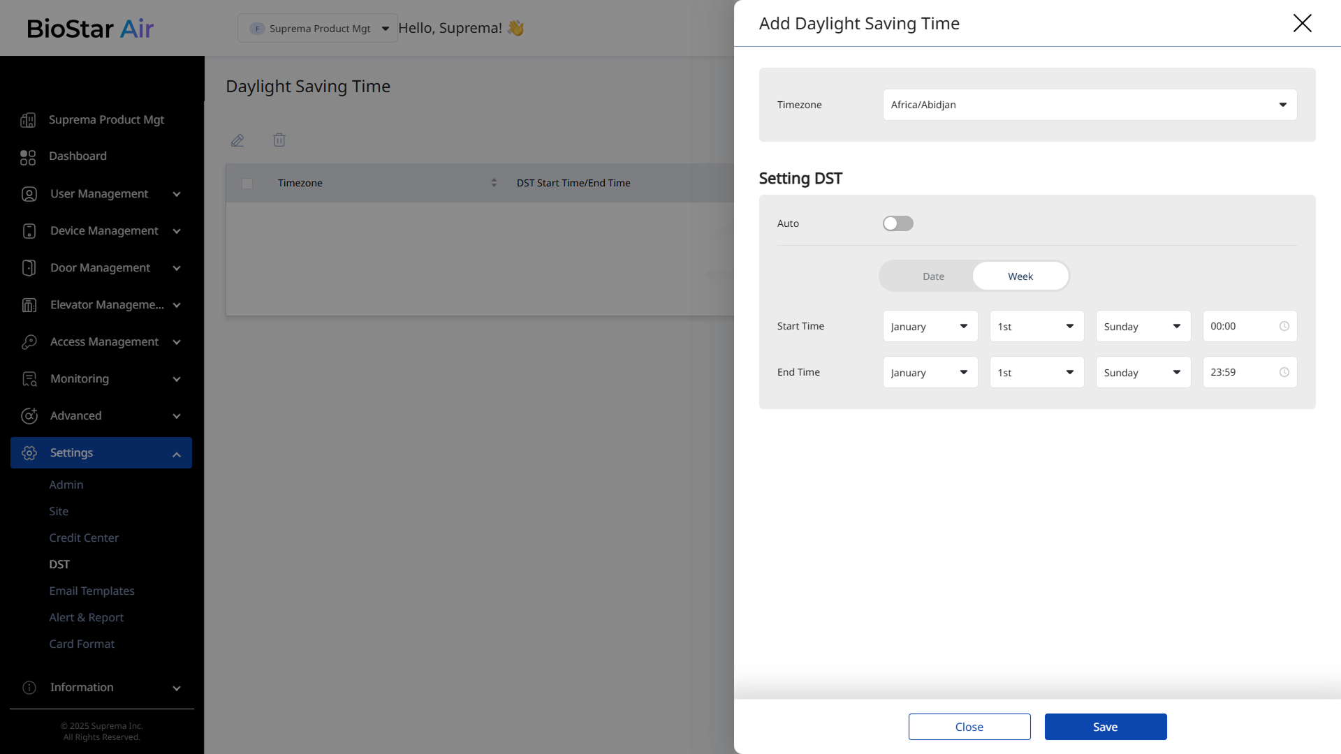 Week: Select the weeks when DST starts and ends.