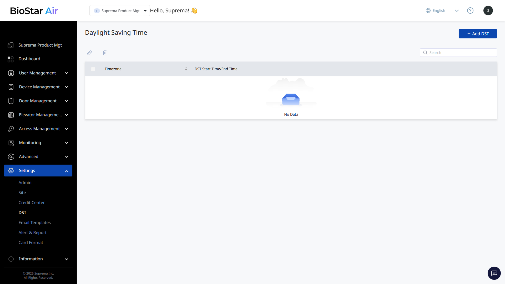 Click Add DST at the top right of the screen.