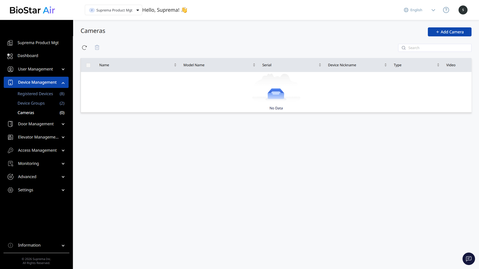 Click Device Management → Cameras in the left sidebar.