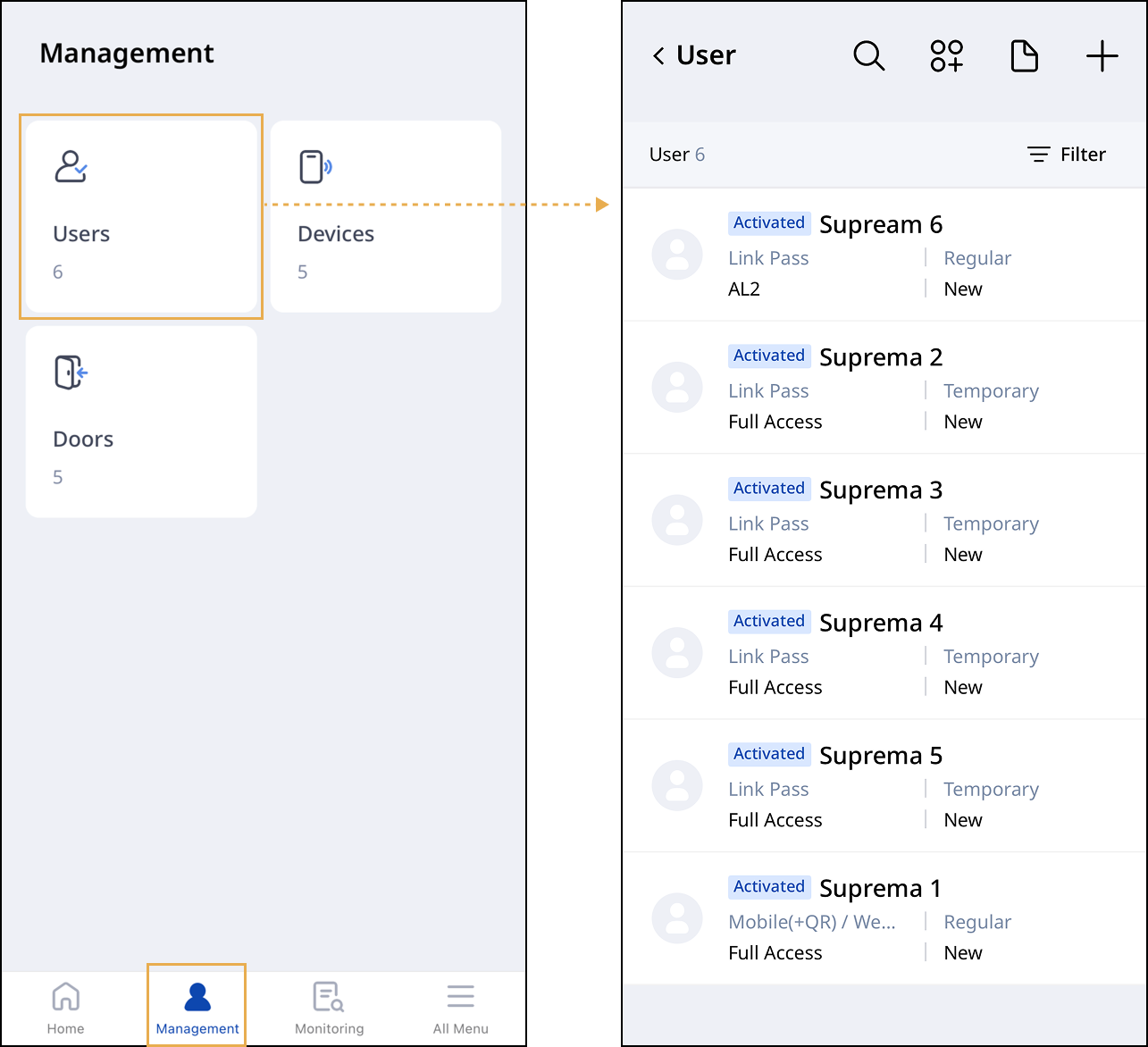 Watch the following video guide to learn about the user management feature in the BioStar Air mobile app.