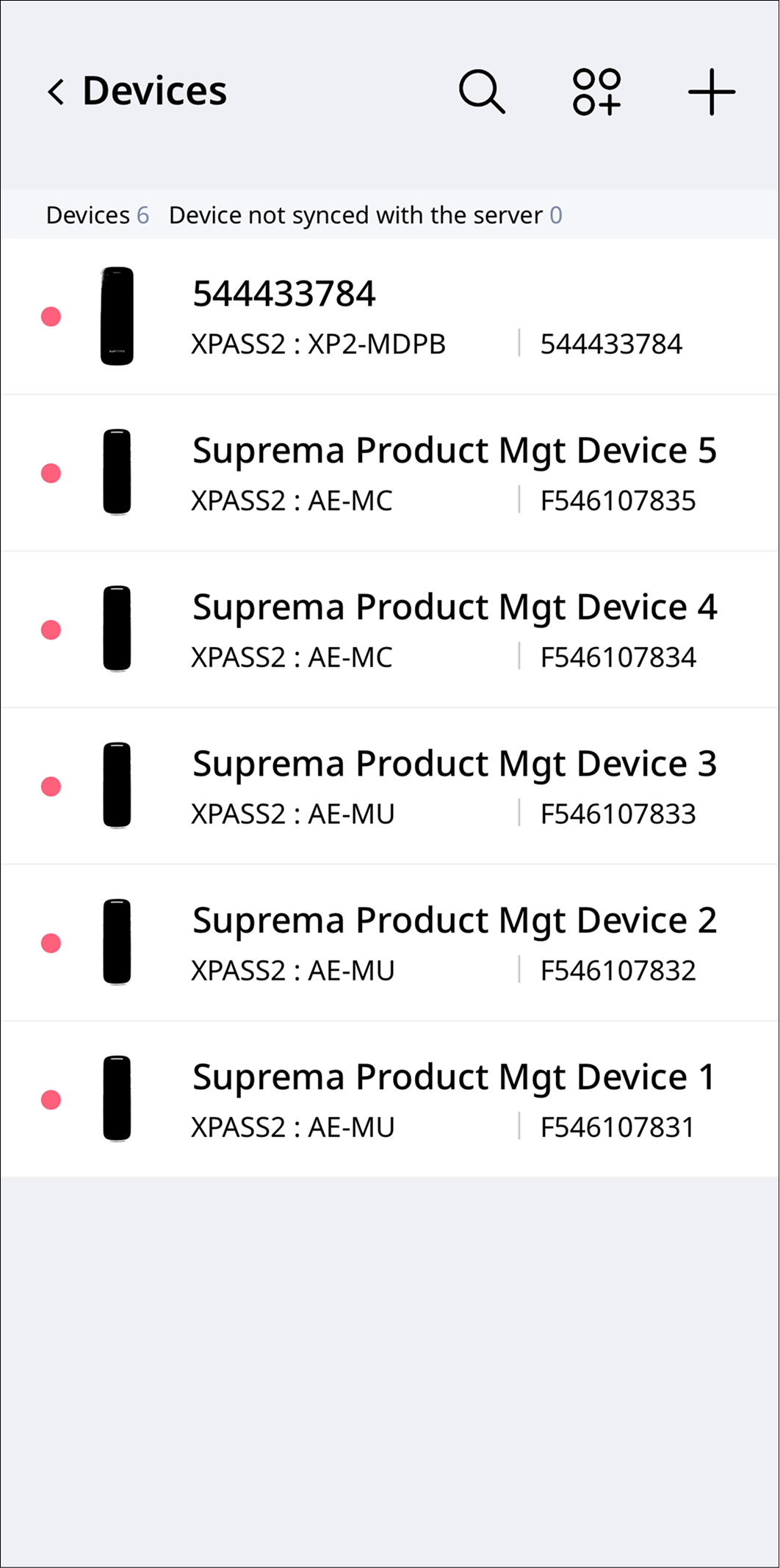 Tap the Devices card on the home screen, or tap Management → Devices in sequence.