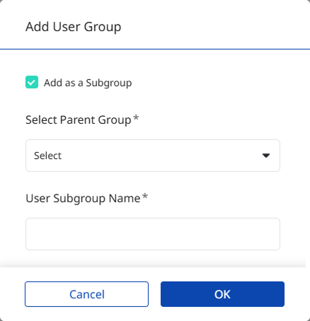 When the Add User Group window appears, click the Add as a Subgroup option.
