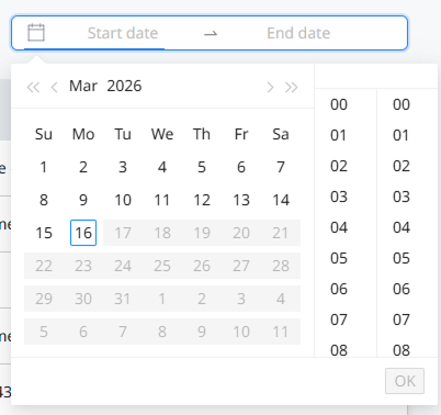 To sort logs by date, select a date and time range, then click OK.