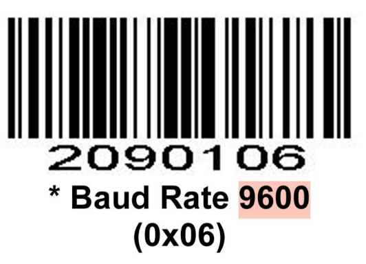 - After connecting the QR scanner to the reader, scan the barcode below to apply the new baud rate.