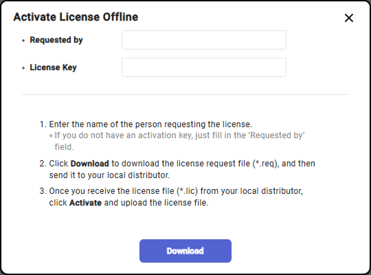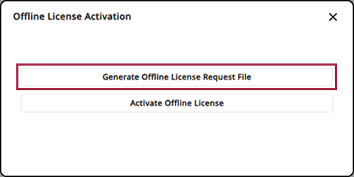 Once you receive the license file (*.lic) from the purchase location, click the Offline License Activation button to upload the license file.