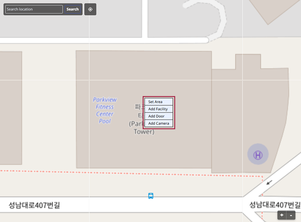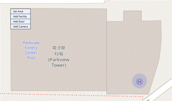 The positions of the added facilities, entrances, and cameras can be changed via drag-and-drop on the map.