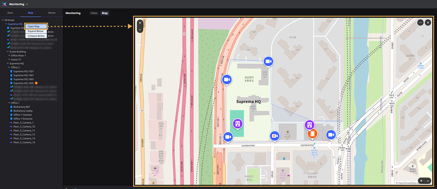 Map settings and map monitoring feature can be used via additional options with an advanced license or higher. For more information on licensing policy, refer to the following.