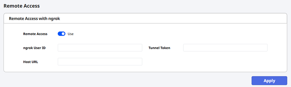 In the Remote Access with ngrok section, change the Remote Access option to Use.