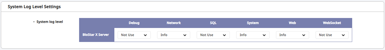 In the System Log Level Settings section, you can set the level of system logs stored in the database.