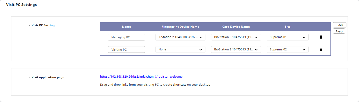 You can select the PC set in Visit PC Setting and assign it to the current PC.