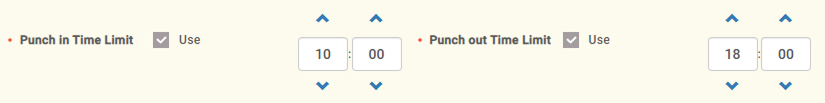 Punch in Time Limit / Punch out Time Limit: Set the time range in which users can authenticate their clock-in and clock-out times.