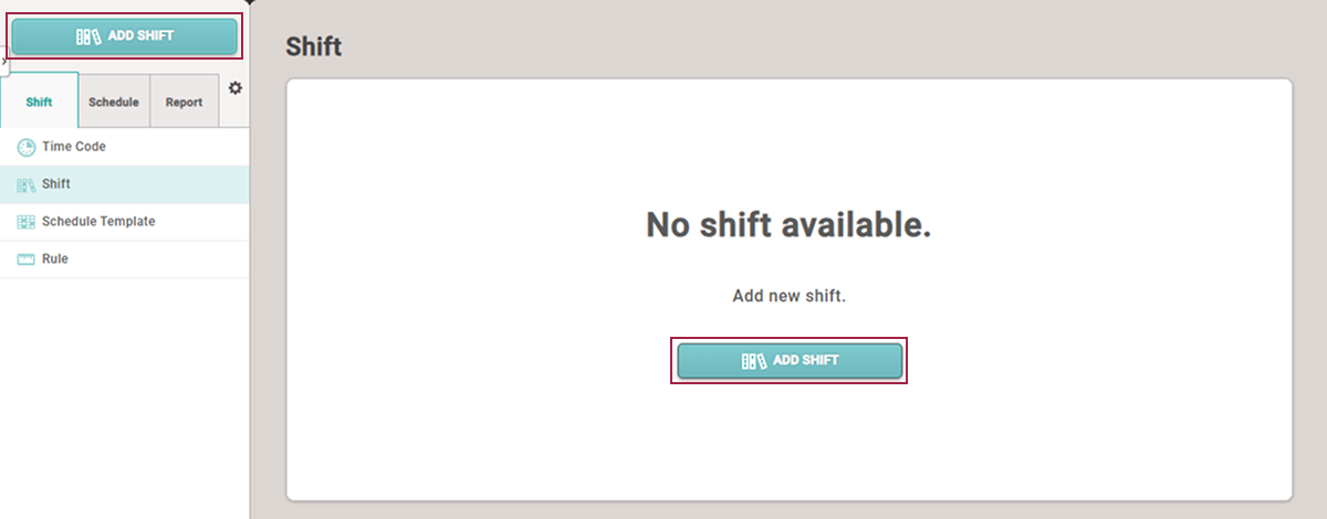 Work shifts can consist of up to five time slots. Click + Add to add a time slot.