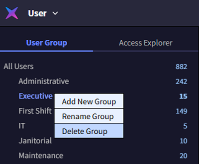 In the left sidebar of the screen, select All Users from the User Group tab and right-click.