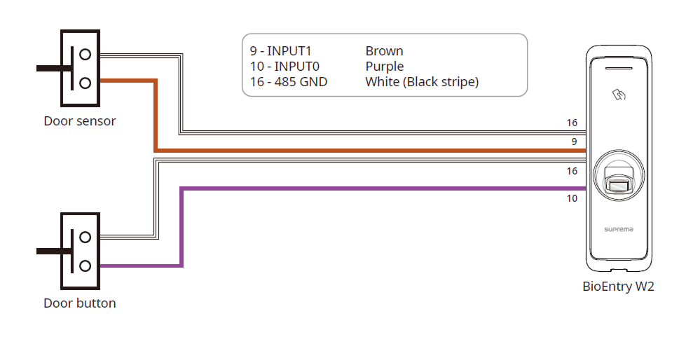 El producto puede conectarse directamente a la cerradura, el botón y el sensor de puerta sin necesidad de conectar un dispositivo de E/S adicional.