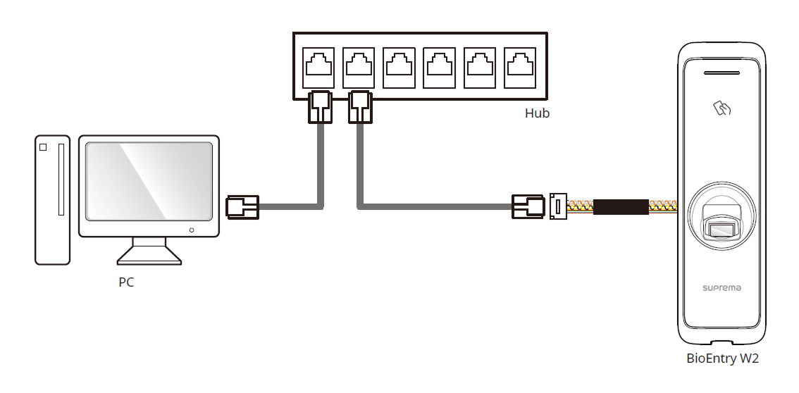 Conecte hasta 31 dispositivos esclavos a un dispositivo maestro. El ancho de banda de RS-485 permite conectar hasta 7 dispositivos de autenticación por huella.