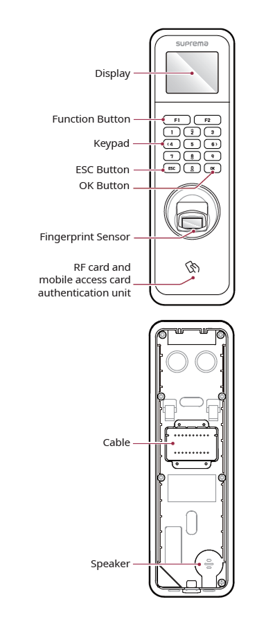 Unidad de reconocimiento de huella dactilar: La parte que reconoce la huella dactilar para acceso.