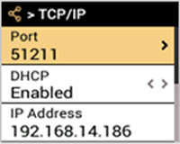 Seleccione NETWORK → TCP/IP y presione 6.