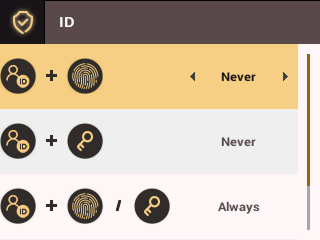 Seleccione AUTHENTICATION → Auth Mode → ID y luego presione OK.