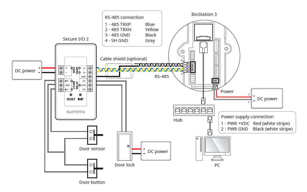 Cuando BioStation 3 es el dispositivo maestro y otro BioStation 3 se conecta a él como esclavo, se puede conectar adicionalmente un Secure I/O 2 y un DM-20 cada uno.