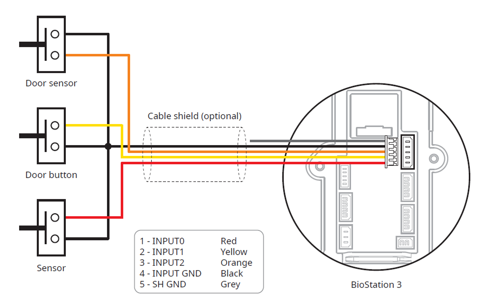 El producto puede conectarse directamente a la cerradura, el botón y el sensor de puerta sin necesidad de conectar un dispositivo de E/S adicional.