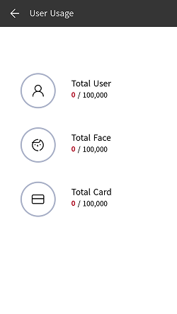 Puede ver de un vistazo la cantidad de usuarios, rostros y tarjetas registrados.