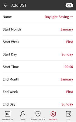 SETTINGS → DEVICE → Daylight Saving Time을 선택한 뒤