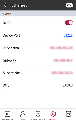 IP Address: 장치의 IP 주소를 확인할 수 있습니다. 수정하려면 DHCP 설정을 끄세요.