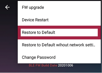 → Restore to Default without network settings.