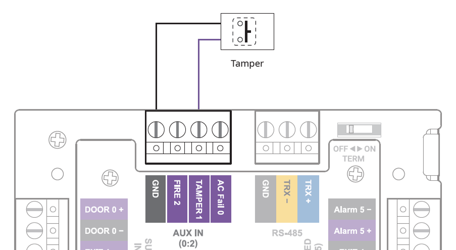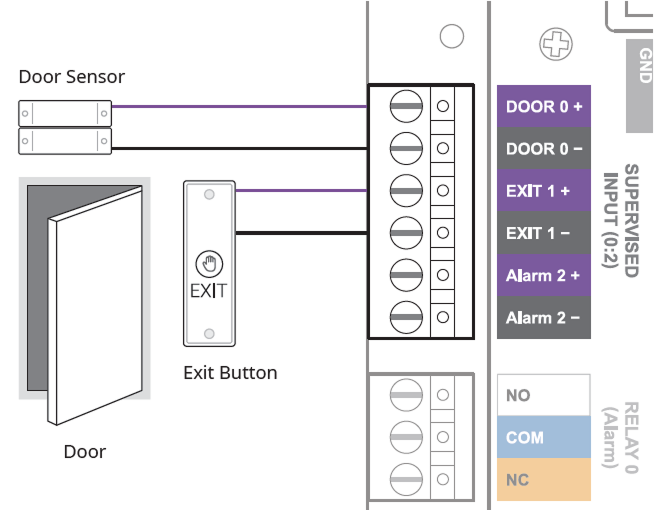 El puerto Alarm de SUPERVISED INPUT puede usarse conectando resistencias de 1 kΩ, 2.2 kΩ, 4.7 kΩ o 10 kΩ. Después de conectar la resistencia adecuada al dispositivo de entrada, configure el mismo valor de resistencia en BioStar X.