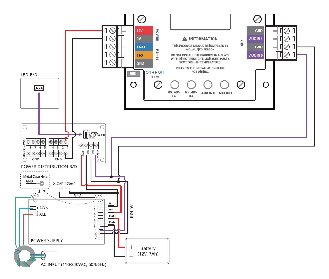 Para evitar interrupciones de energía, conecte una fuente de alimentación ininterrumpida (UPS); las salidas de contacto de detectores de cortes de energía u otros dispositivos pueden conectarse al terminal AUX IN.