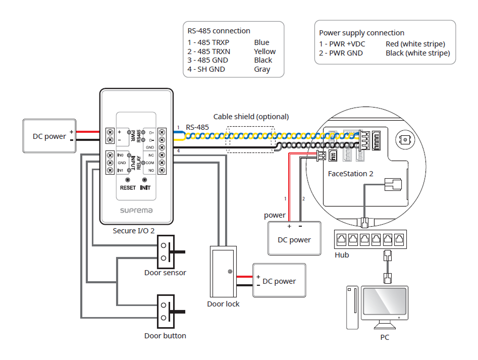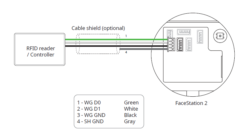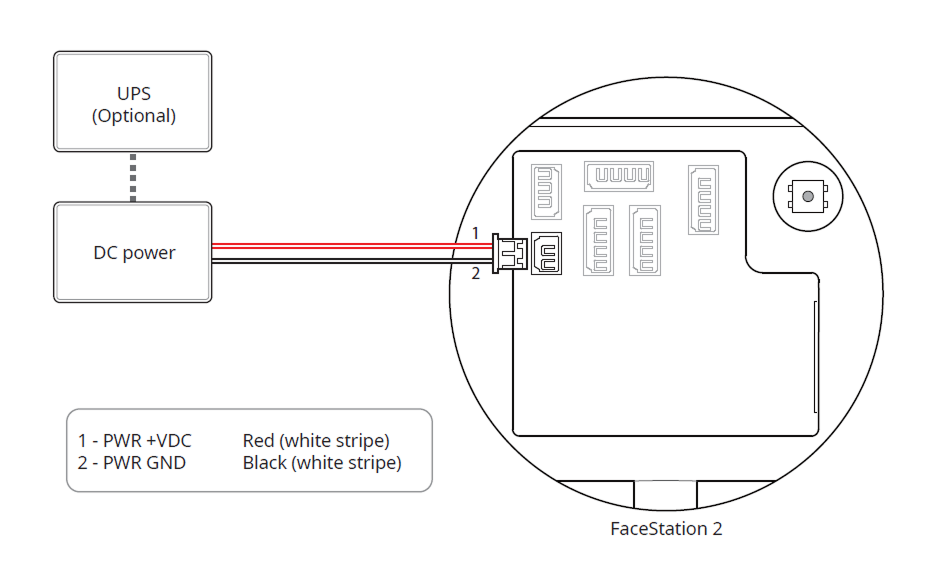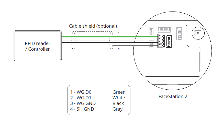 Cuando FaceStation 2 es el dispositivo maestro y otro FaceStation 2 se conecta a él como esclavo, se puede conectar adicionalmente un Secure I/O 2 y un DM-20 cada uno.