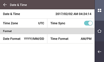 Date & Time: Verifica la fecha y hora actuales. Desactiva Time Sync para modificarla manualmente.