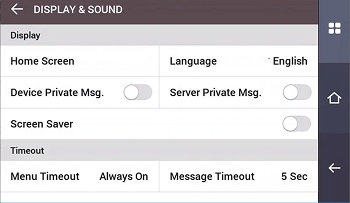 Message Timeout: Configure el tiempo (s) para que un mensaje de configuración completada o de notificación desaparezca automáticamente.