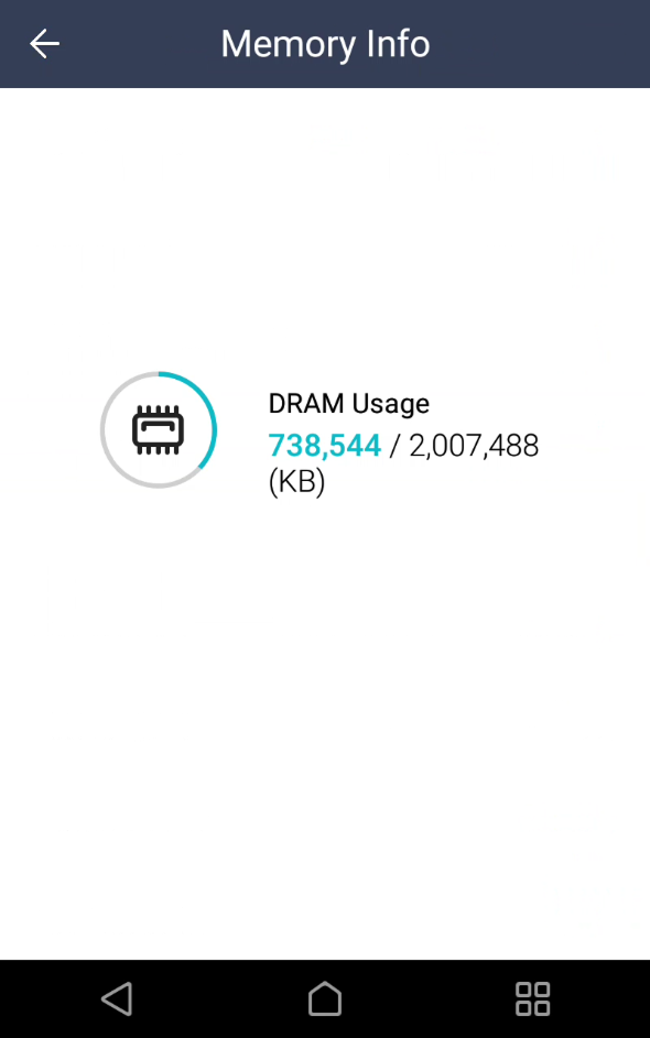 Selecciona DEVICE → Memory Info. Consulta el estado de uso de memoria del dispositivo.