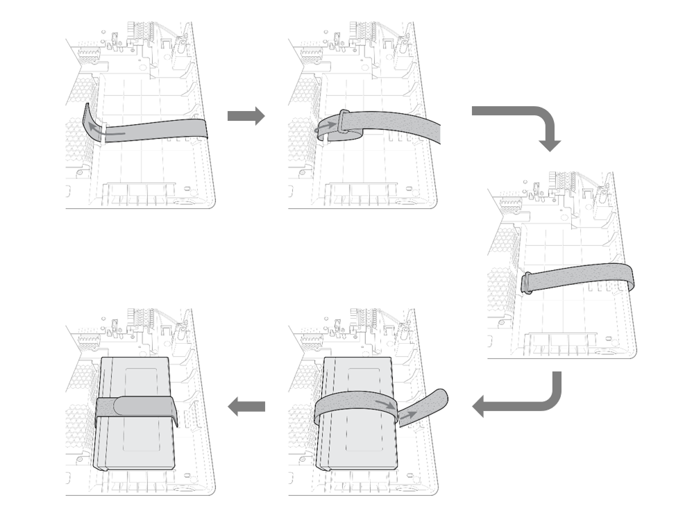 Inserte la correa de Velcro de la batería en la carcasa y sujete la batería.