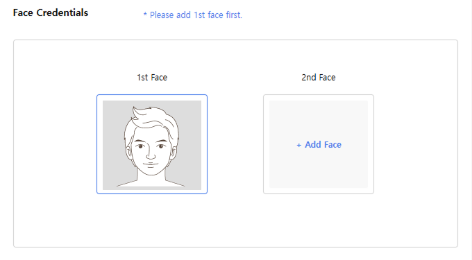 • 얼굴 사진 등록 시 얼굴이 검출되지 않으면 'The face cannot be found in the photo or the quality is poor. Please try again with a different photo.' 메시지가 표시됩니다.