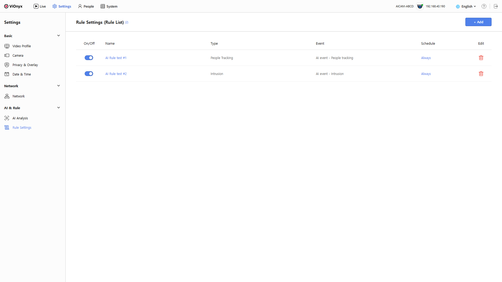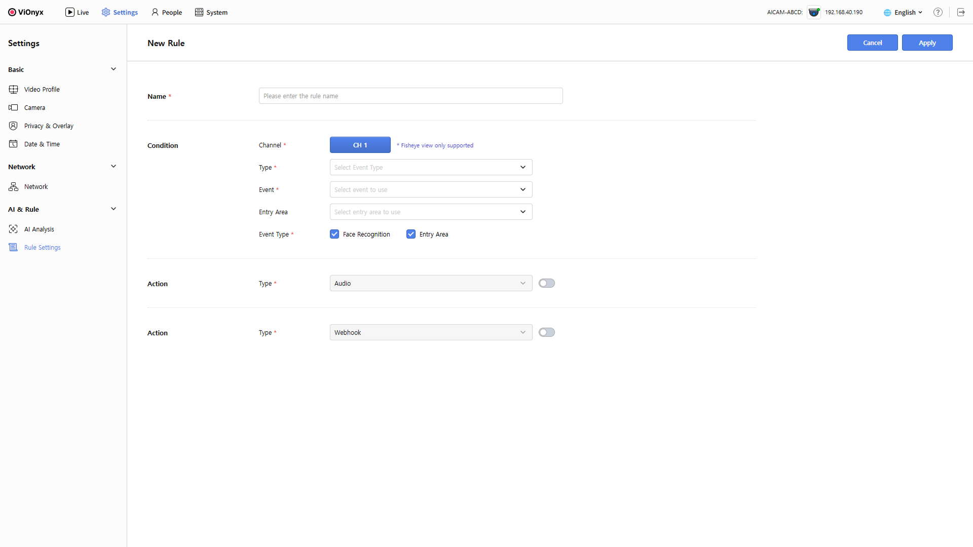 AI 규칙을 사용하면 이벤트 유형과 조건에 따라 오디오 재생 또는 웹훅 전송을 자동으로 실행할 수 있습니다. 이 문서에서는 규칙을 생성하고 운영하는 전체 절차를 안내합니다.