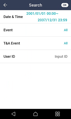 Establezca los criterios de búsqueda y haga clic en OK para mostrar los registros que coincidan con los criterios.