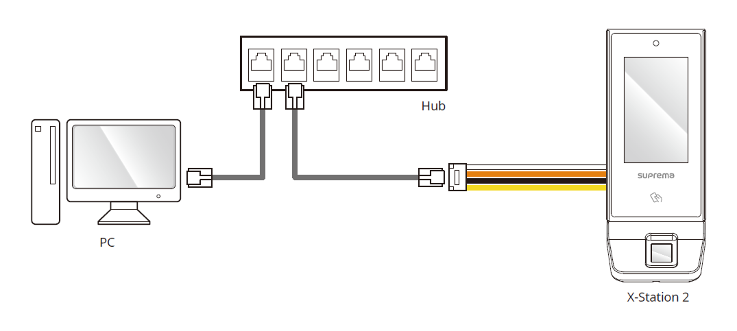 Conecte hasta 31 dispositivos esclavos a un dispositivo maestro. El ancho de banda de RS-485 permite conectar hasta 7 dispositivos de autenticación por huella.