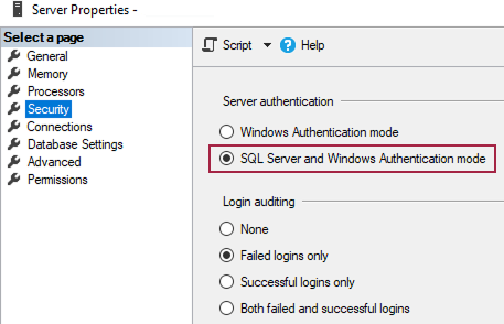 Allow SQL Authentication: