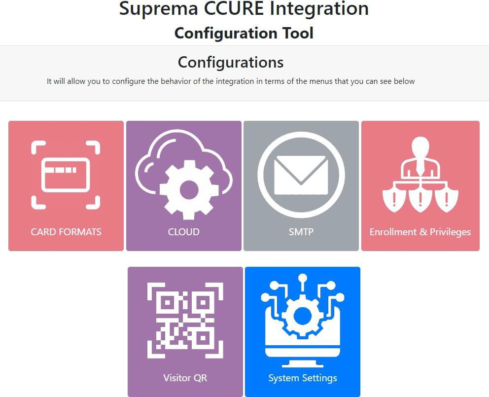 The Suprema - C•CURE Integration Configuration Tool is a web-based tool which you can access from anywhere in your Network as long as you have access to the machine where it was installed.