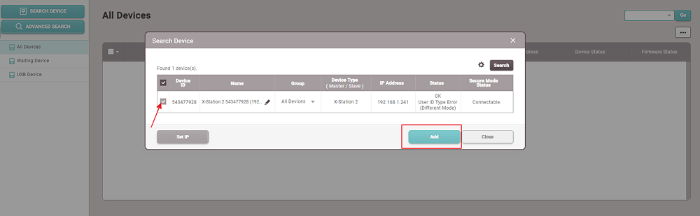 Now press the search button and select the device and press Add button.