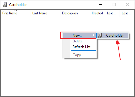 Press right-click New → Cardholder.