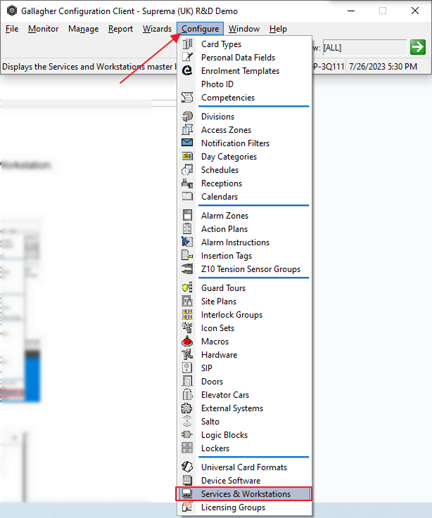 On Configuration Client go to Configure → Services & Workstations.