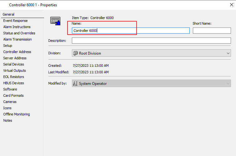 Let’s configure Controller 6000, In the General setting set the name as Controller 6000 (set name same as your controller).