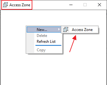 Go to the Access Zone and the window will open up. Now press right-click in the Access Zone Window and Select New → Then click on Access Zone, and it will create an access zone.