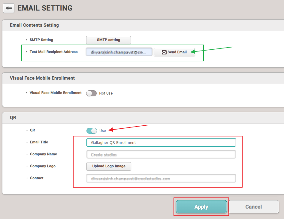 Email Configurations for QR Code